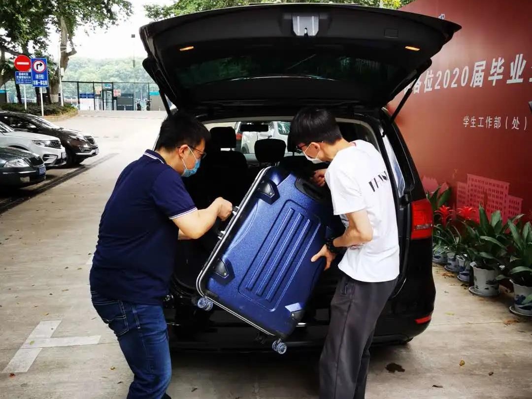 在确定2020届毕业生返校工作安排后,考虑到学生往返车站、搬运行李、天气状况不佳等存在的不便情况,学院近四十位青年教师自发组成“爱心志愿车队”,化身专属滴滴司机,接送学生往返车站机场;并制作了爱心车队绑带,便于学生辨认车辆,能够随时获取帮助。