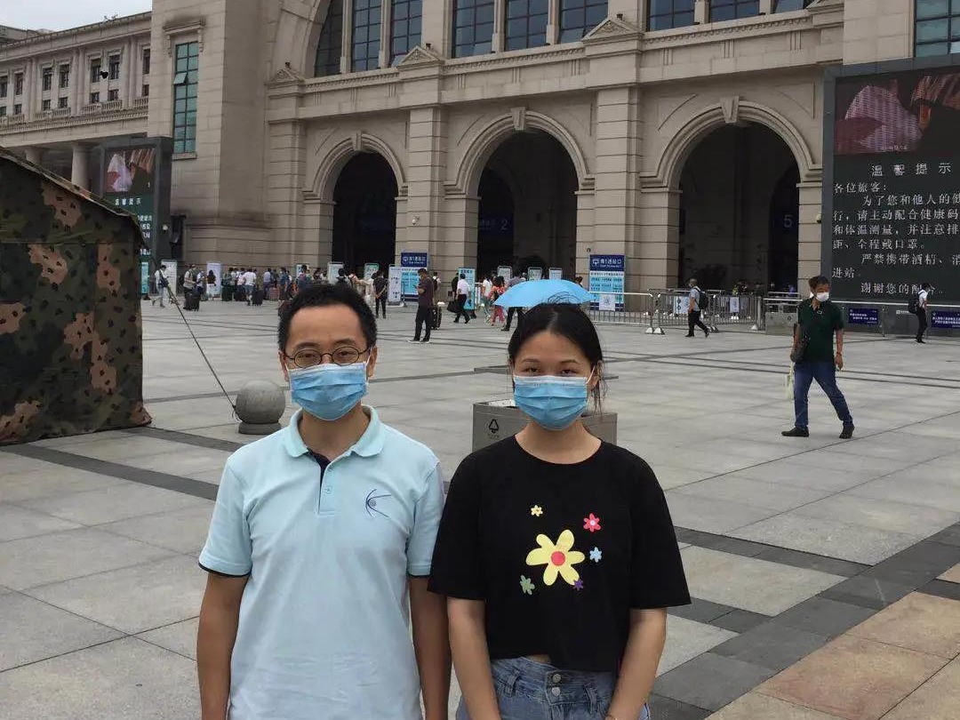图2:屈少波老师送毕业生屈文媛前往武汉站