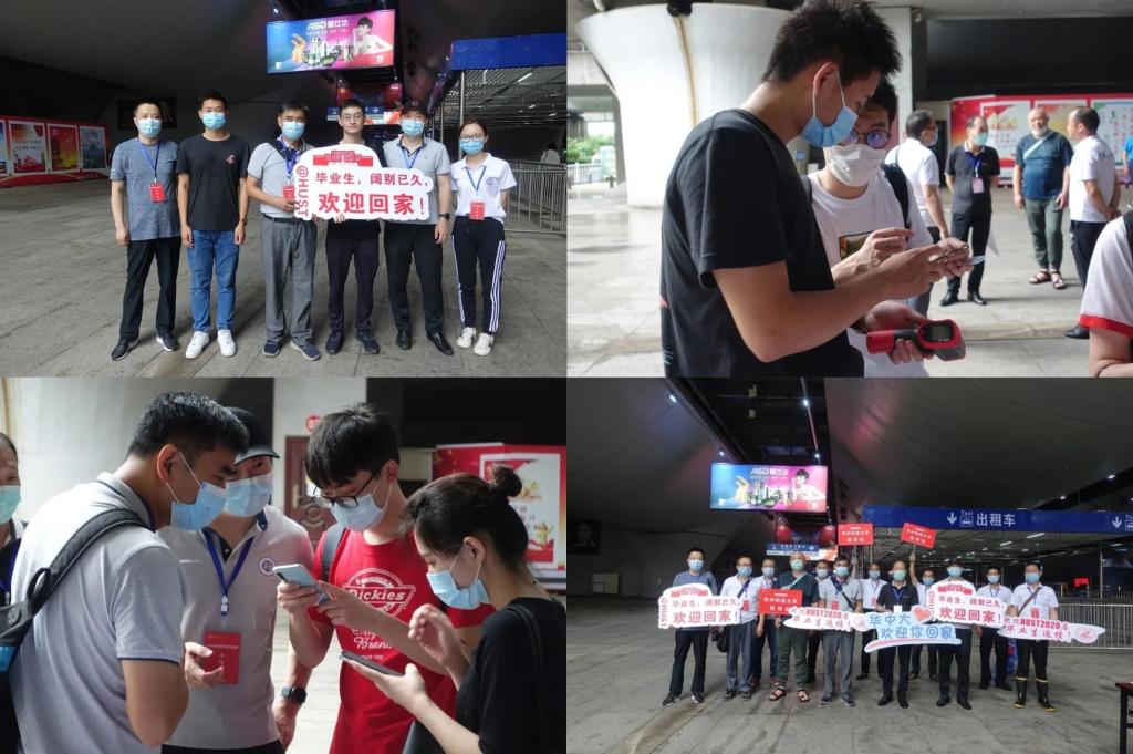 6月13日,伴随着武汉今夏第一次暴雨天气,第二批返校的本科生也陆续抵达学校了。13日早晨,在学院党委书记张凯的带领下,物理学院八位老师轮值在武汉站迎接毕业生返校,“回家”的第一面,我们用笑脸迎接大家。