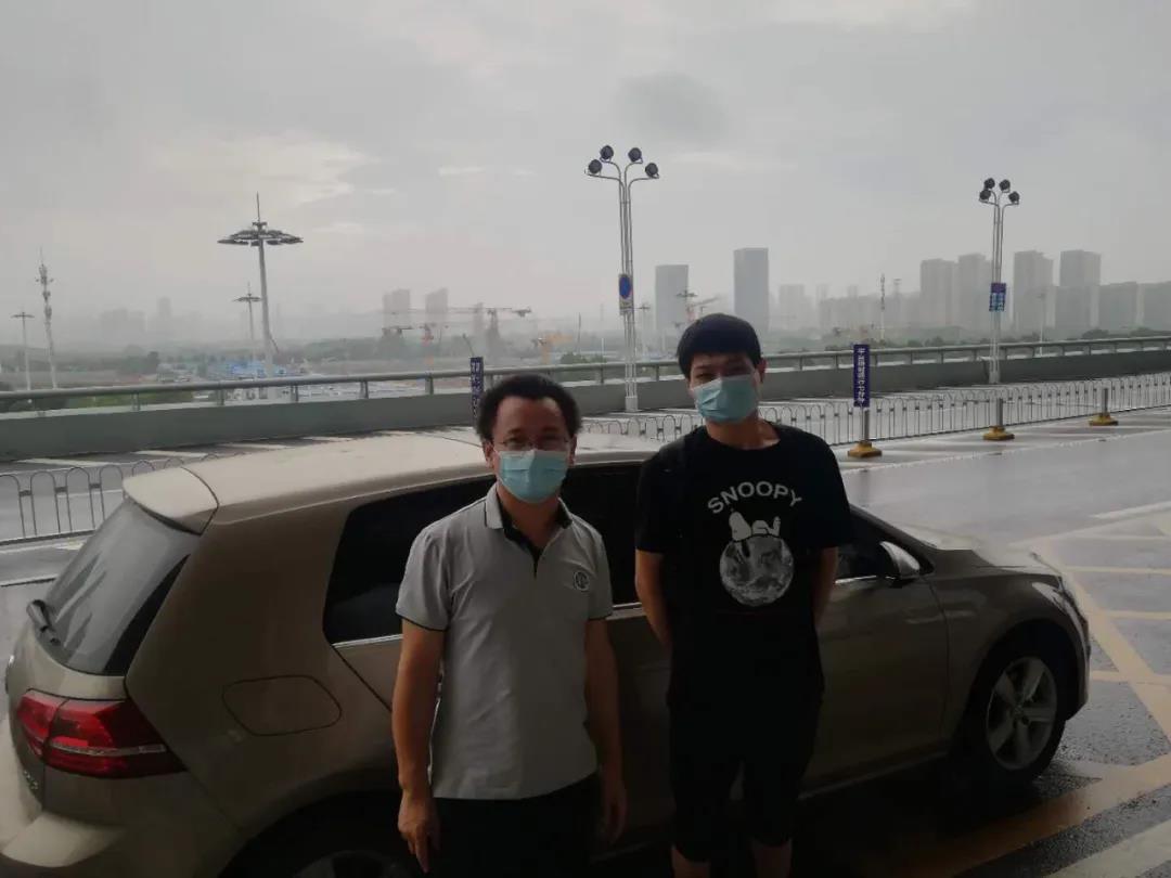 图7:刘跃龙老师送毕业生冯东浕前往汉口站 图8:周敏康老师送毕业生汪贺前往天河机场