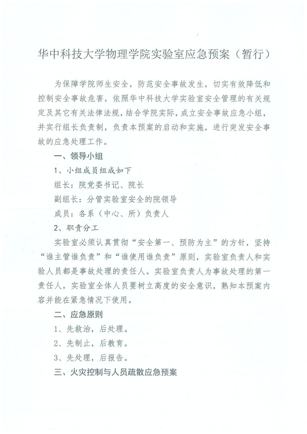 院安〔2020〕4号关于印发《华中科技大学物理学院实验室应急预案(暂行)》的通知