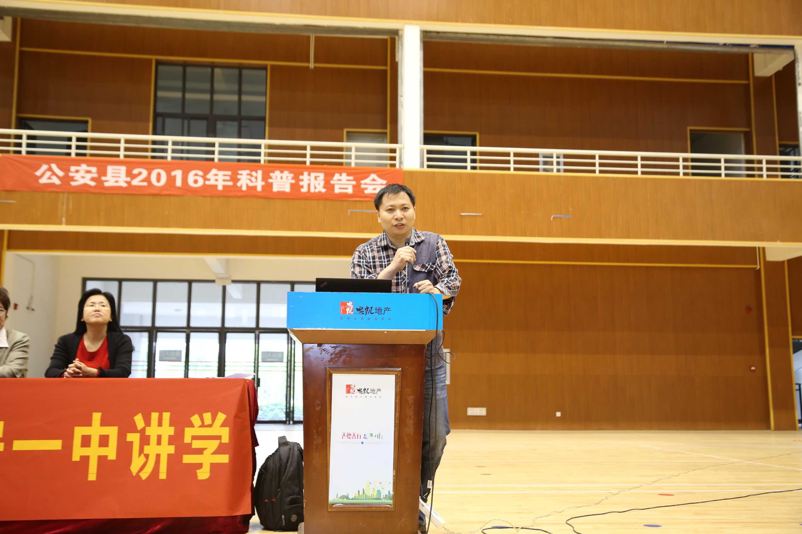 2016年9月29日下午4点,湖北省公安一中体育馆,我院生物物理所刘士勇副教授给1000多名高二学生开展了《生命是什么》的科普报告。此次报告会由公安一中政教处主任佘克芳主持,我校赴公安一中招生组负责人徐彩云老师陪同刘老师前往。刘老师结合个人求学与科研经历等方面,讲述了蛋白质折叠与设计、分子疾病、生物大分子结构测定技术发展历史对生命科学的影响。报告会现场气氛热烈,刘老师还与在场同学进行了的互动。