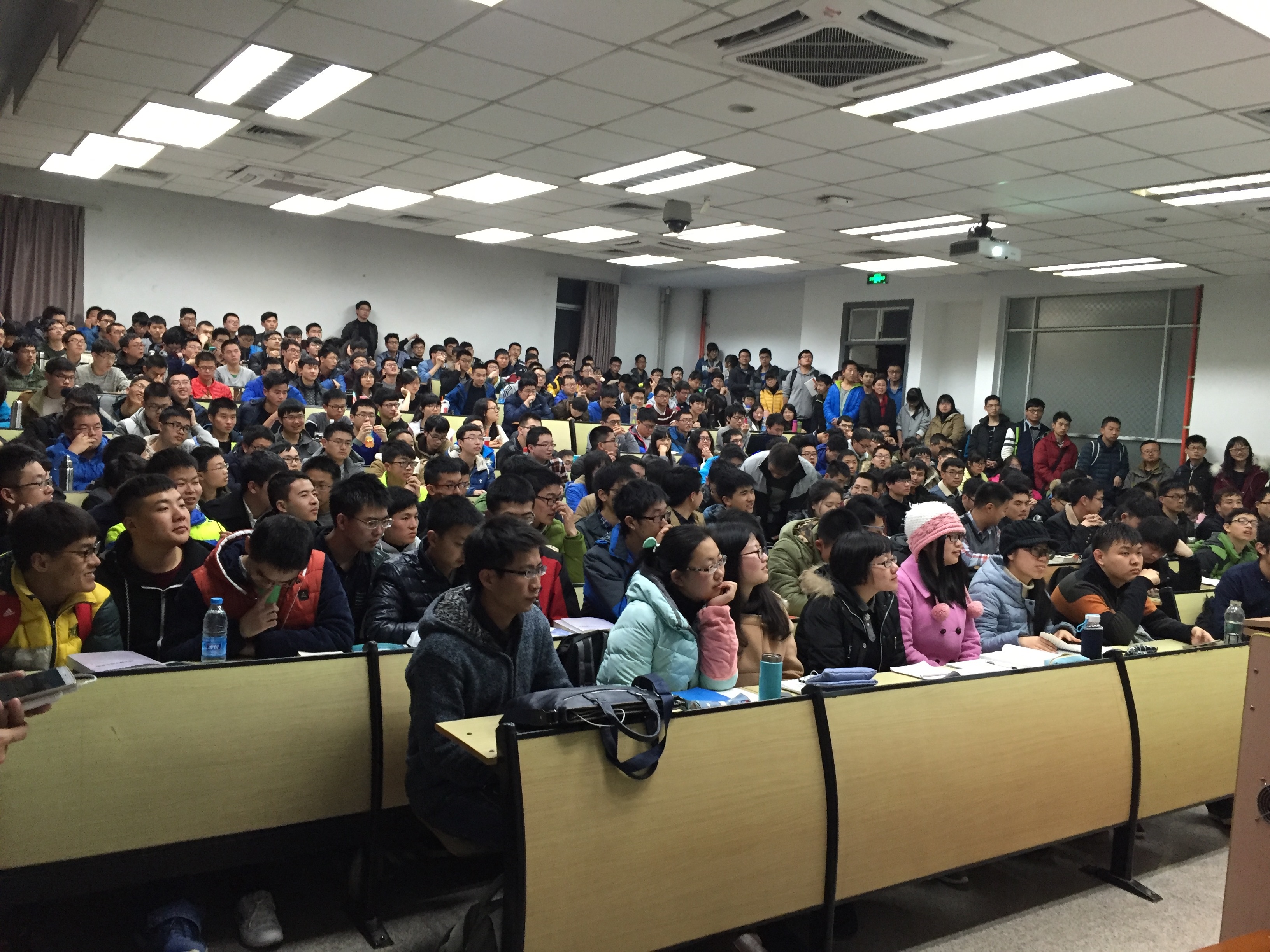 此次报告会场地爆满,整个会场座无虚席,中间走廊同学们席地而坐,两边走廊都站满了的师生。除了时而传来的掌声和学生与叶老师的互动声音,只剩下叶老师激情四射的讲解。大家屏气凝神,生怕漏掉一句话、一个词。叶老师结合他丰富的科研经历,用风趣幽默的语言讲述了进行科学研究的方法和思路以及持之以恒的精神。他的讲解深入浅出,引人入胜,将枯燥难懂深奥的引力波理论、引力波探测技术娓娓道来,多次被热烈的掌声所打断。会后,同学们与叶老师进行了深入的交流互动,叶老师对大家的问题都做了详尽的解答。