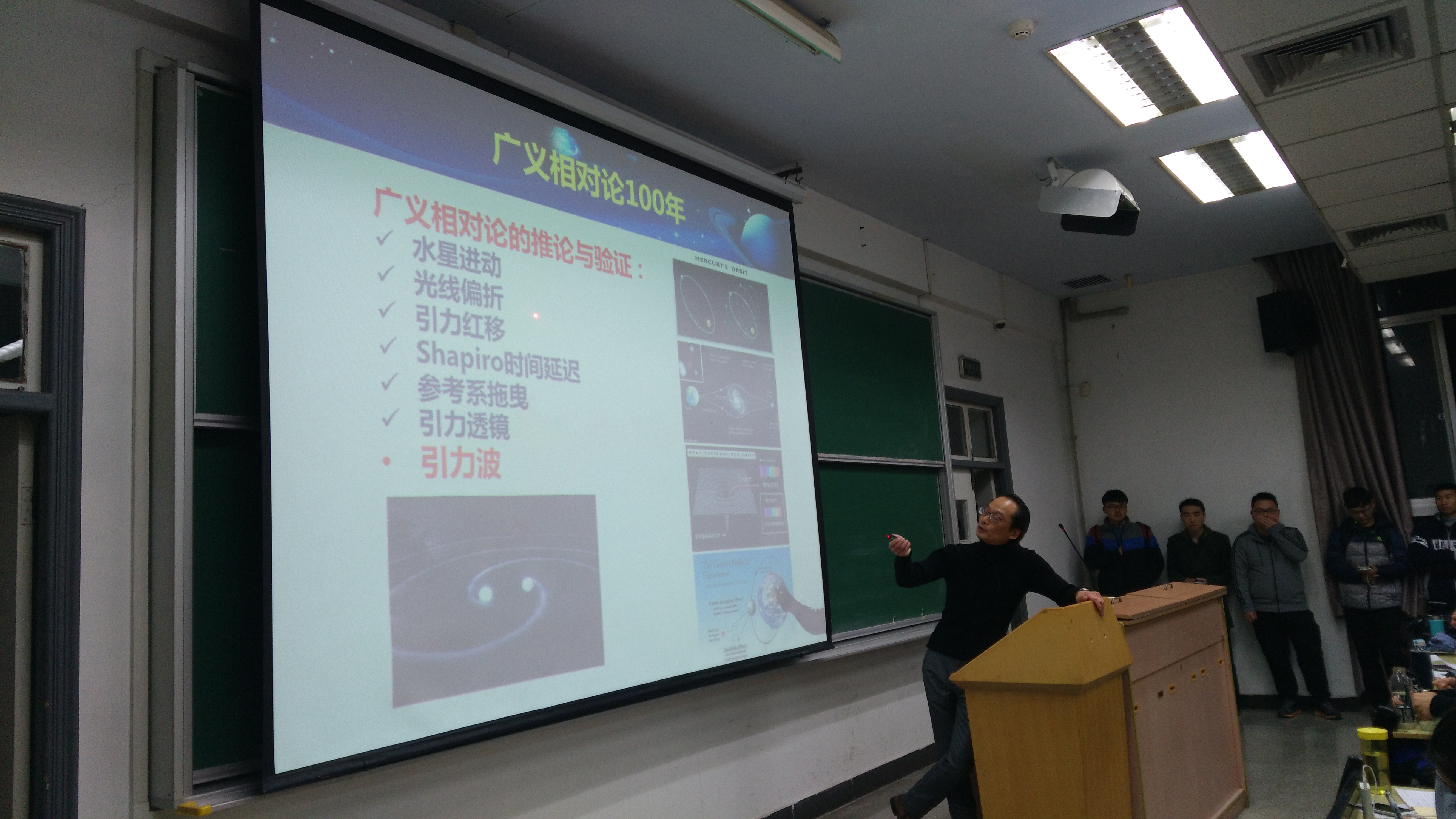 前不久美国LIGO宣布探测到引力波,引力波探测成了近期非常热门的话题。为了让我院学生更多地了解引力波探测,2016年2月24日晚19:00,我们邀请了本院教授、“天琴计划”团队核心负责人叶贤基老师在西十二教学楼N101为全院师生作了题为《引力波与天琴计划》的学术报告。学术报告会由学院党委副书记刘会平主持。此次报告会吸引了我院及外院近300人参加。