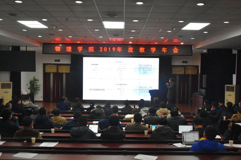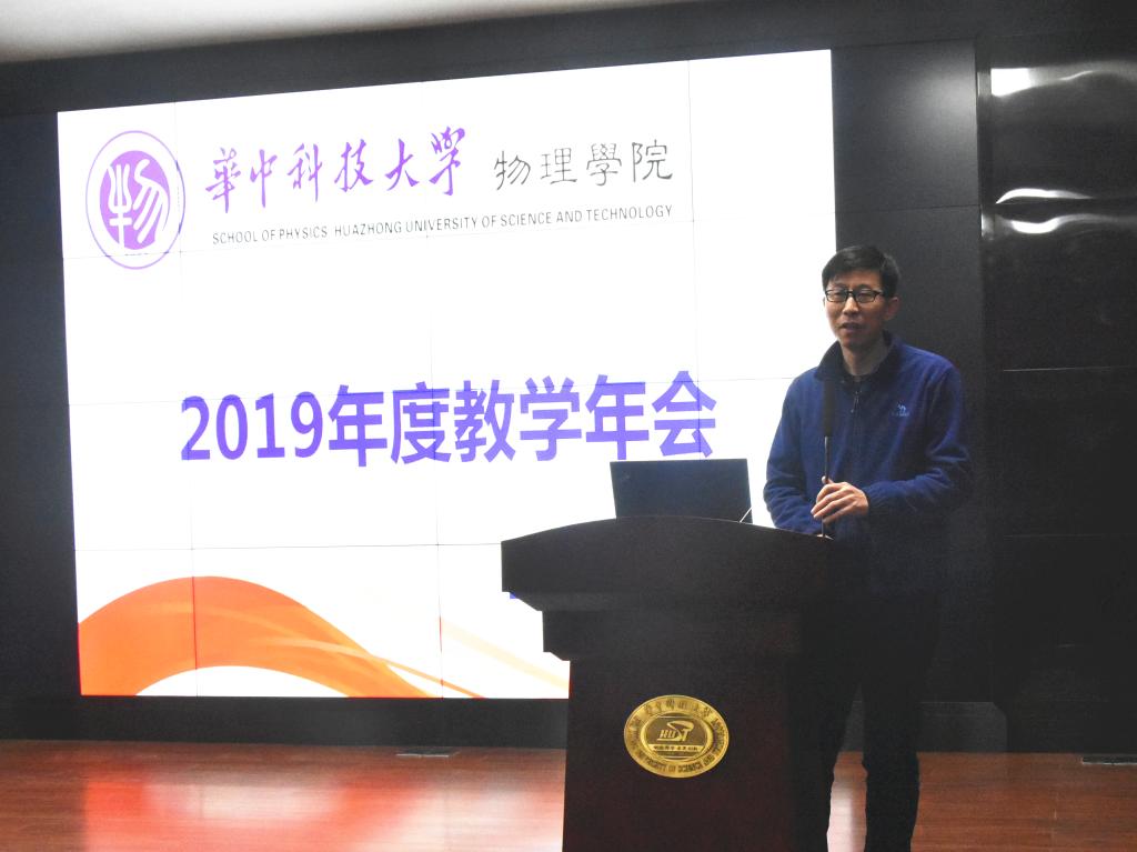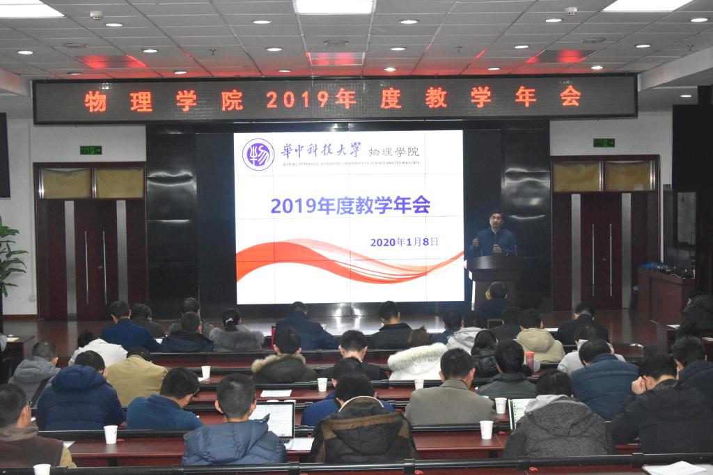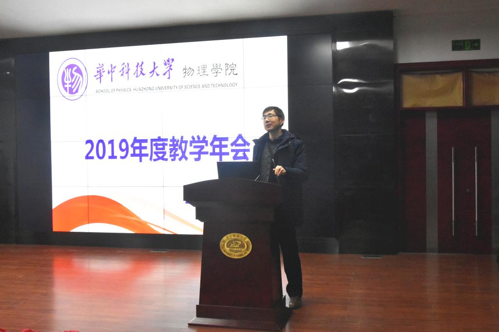 2020年1月8日上午,华中科技大学物理学院2019年度教学年会在科技楼南104报告厅隆重举行。物理学院党委委员、党政联席会成员、教学委员会全体成员、督导组全体成员、全体任课教师、全体研究生助教、学生会代表出席了教学年会。会议由副院长吕京涛主持。