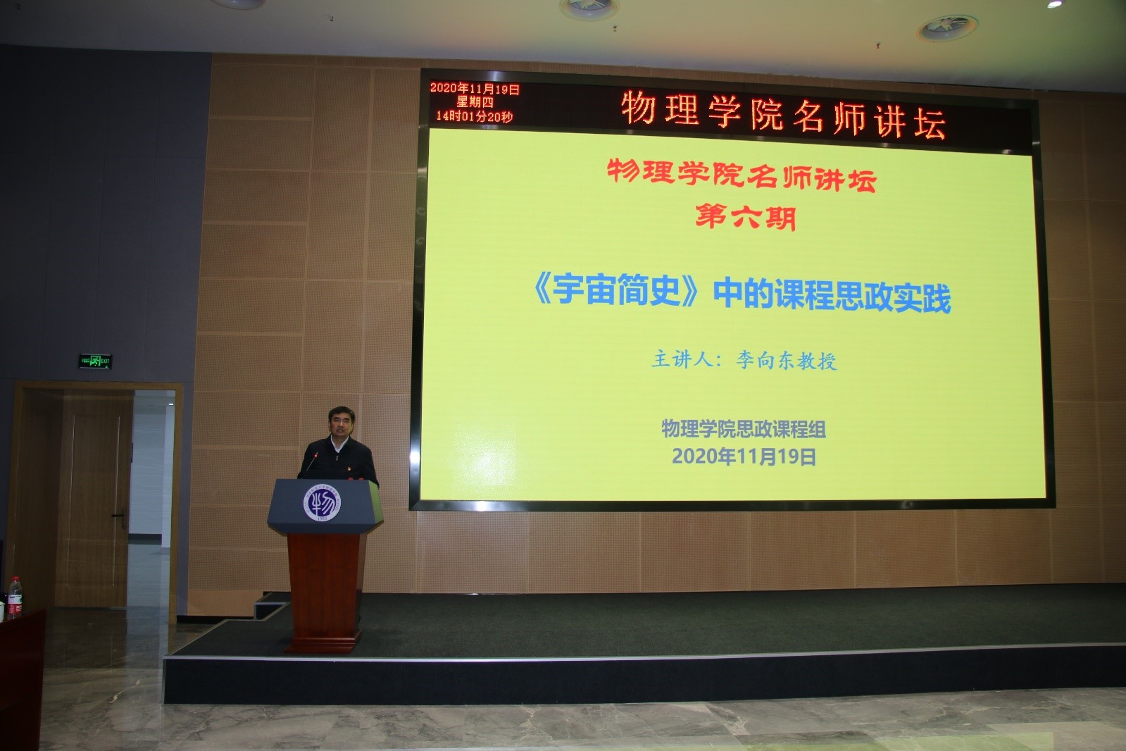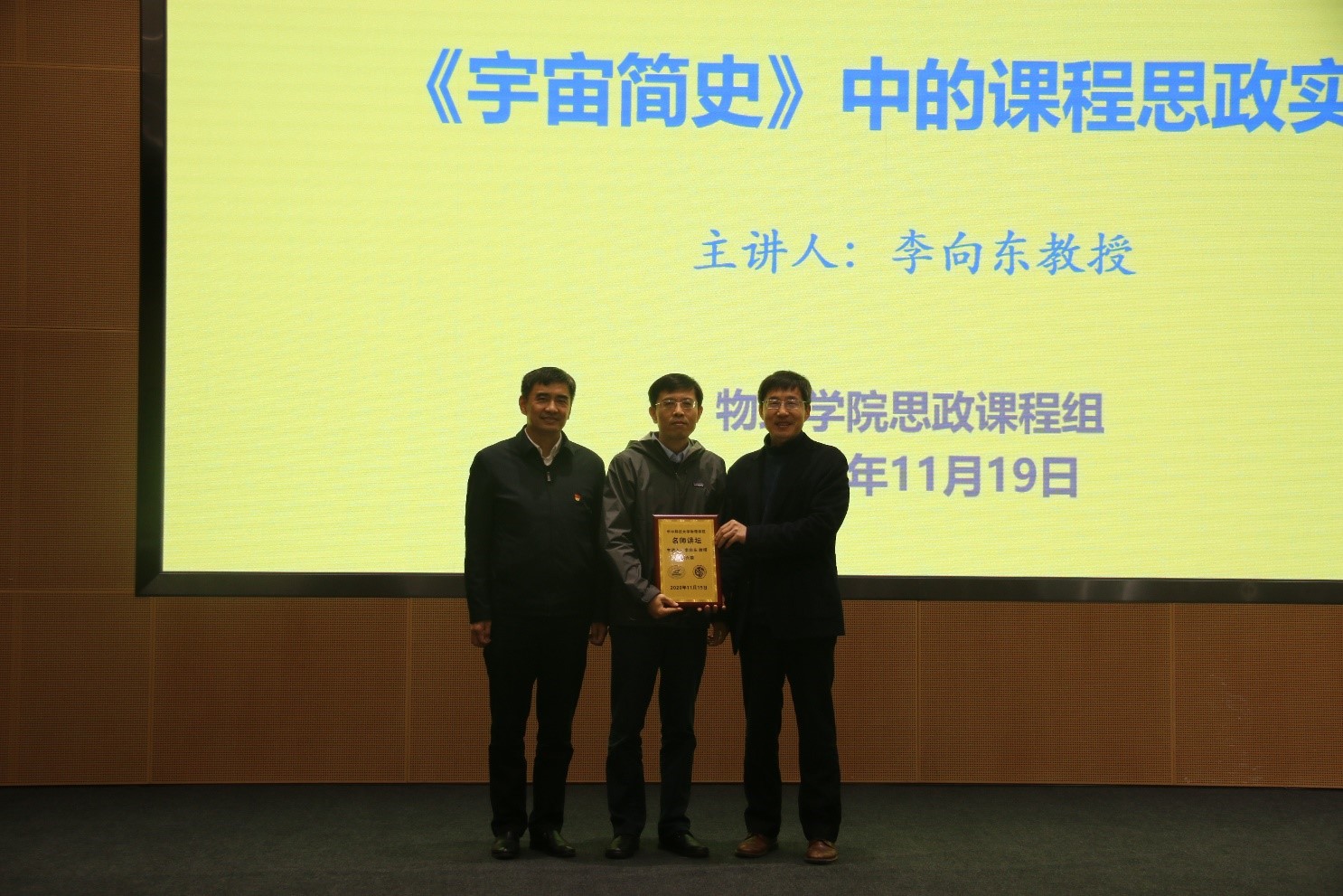11月19日下午,南京大学天文与空间科学学院院长李向东教授应邀为我院师生作了题为《宇宙简史中的课程思政实践》的报告。李向东教授2000年获得国家杰出青年科学基金资助,教育部长江学者奖励计划特聘教授,多次获得国家级科研成果和教学成果奖励。此次报告是我院“名师讲坛”系列讲座之一,报告会由物理学院张凯书记主持,陈相松院长、吕京涛副院长、蔡建明副院长、学院广大教师、部分研究生及本科生参加。