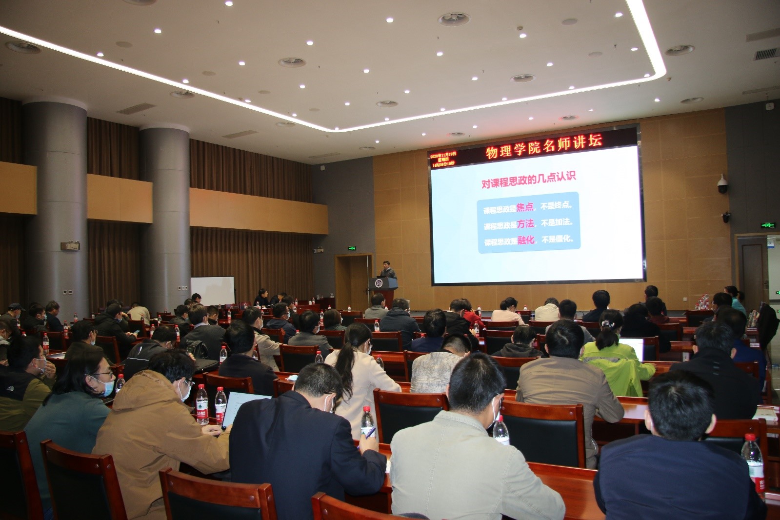 报告前,张凯书记发言指出立德树人是高校立身之本,推进课程思政建设是落实立德树人根本任务的重要战略举措;学院高度重视课程思政建设工作,热烈欢迎李教授现场分享课程思政建设的思路与经验。陈院长代表学院向李向东教授颁发了华中科技大学物理学院“名师讲坛”证书。