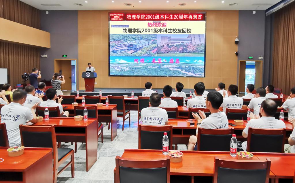 7月25日上午,30余位2001级本科生校友在精密重力测量科学中心大楼四楼多功能厅举行了返校座谈会。物理学院院长陈相松、党委副书记贾法雷、2001级任课教师代表肖奕教授、汪定雄教授参加了本次座谈会。