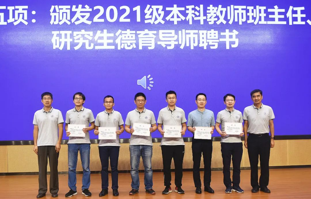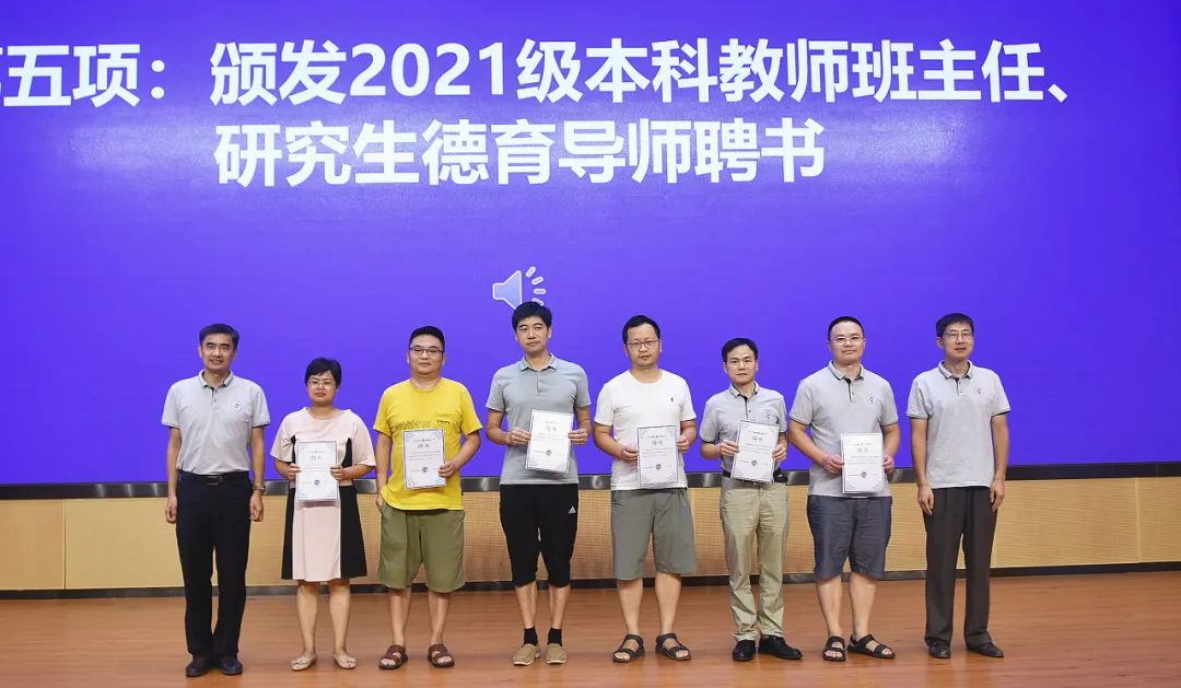 党委副书记贾法雷依次介绍了本科生教师班主任及研究生德育导师,张凯书记和陈相松院长为教师班主任及德育导师颁发聘书。