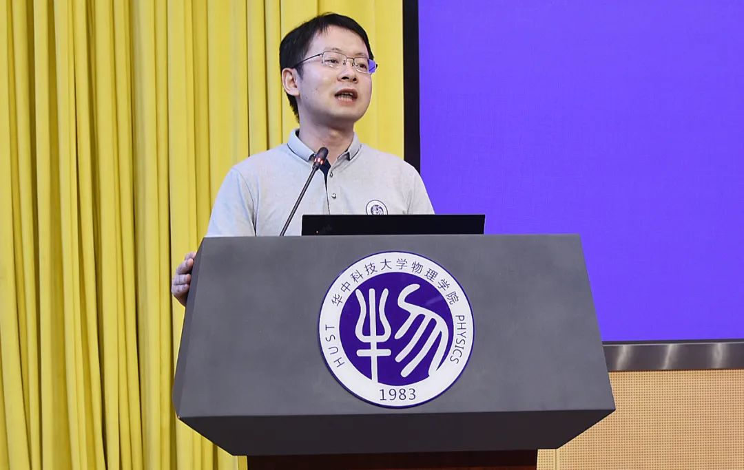 教师代表黎敏发言。他首先点出物理学习的价值,尽管物理学科广博,专业繁多,但研究的都是世界万物运行最本质的规律。从宇宙爆炸到电子运动,我们通过学习物理,从而认识世界。而如何学好物理呢?一要认知力,知其然更要知其所以然;二要思辨力,不先入为主,敢于提问,勇于质疑;三要创新力,从小处入手,不断实践,最终完成从0到1的突破。最后,黎敏老师给物院学子提出三点希冀:仰望星空、脚踏实地,勇于开拓、锐意进取,怀抱理想、坚守初心。