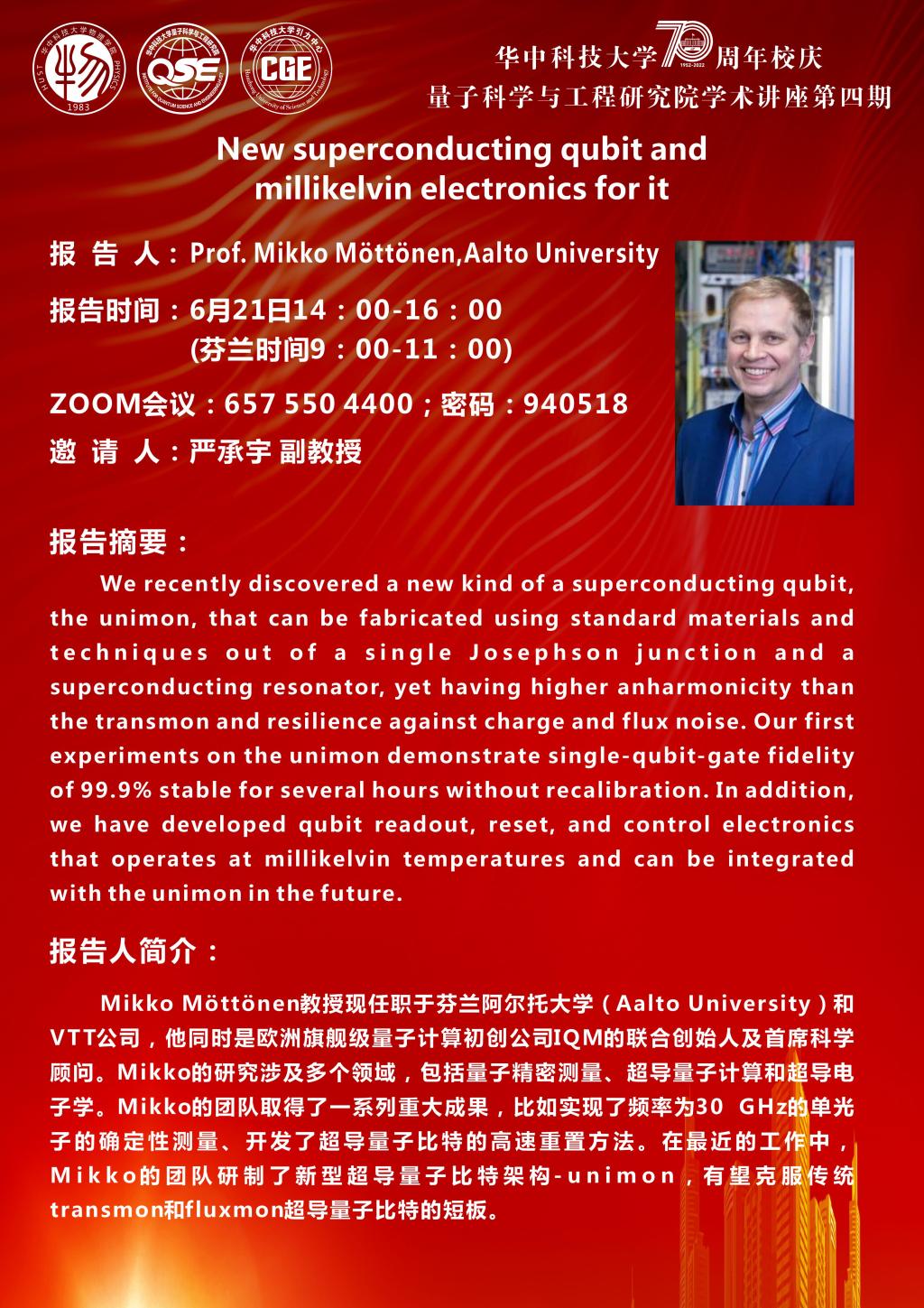 第四期:2022年6月21日,Prof. Mikko Möttönen, Aalto University