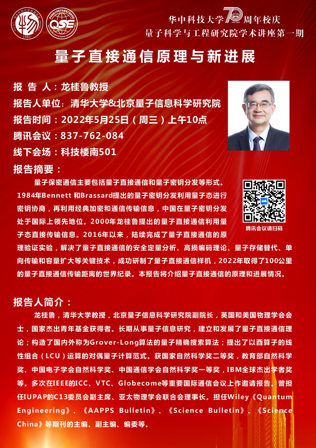 第一期:2022年5月25日,龙桂鲁教授,清华大学&北京量子信息科学研究院