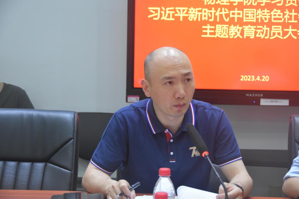 4月20日下午,物理学院召开学习贯彻习近平新时代中国特色社会主义思想主题教育动员部署会。党委书记张凯主持会议,院长蔡建明、党委副书记贾法雷和全体党支部书记参加了本次动员部署会。