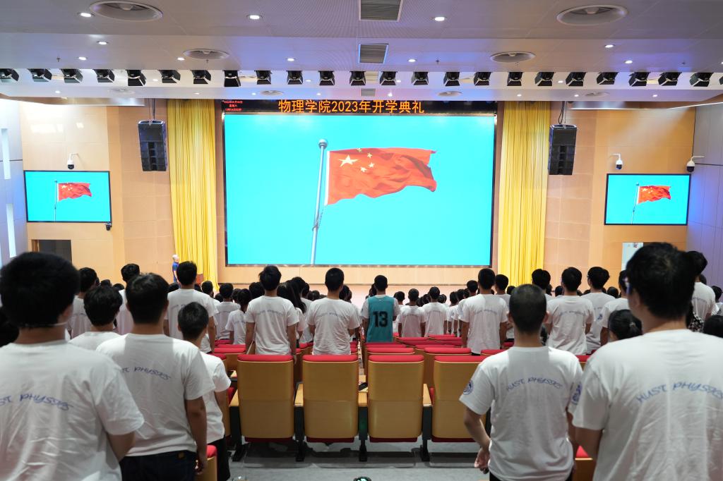 2023年9月8日下午,华中科技大学物理学院新生开学典礼暨开学第一课在精密重力测量科学中心大楼一楼报告厅隆重举行。物理学院全体院领导、2023级本科生教师班主任、新聘任的研究生德育导师以及全体辅导员出席典礼,物理学院2023级本科生和研究生参加,典礼由党委副书记贾法雷主持。