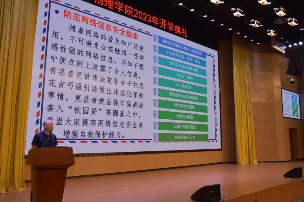 物理学院2023级新生开学典礼暨开学第一课至此圆满落幕。值此建院四十周年之际,希望物院学子们在风华正茂的岁月中,探物穷理,追求卓越,以自身所学,为实现科技强国的目标贡献力量。