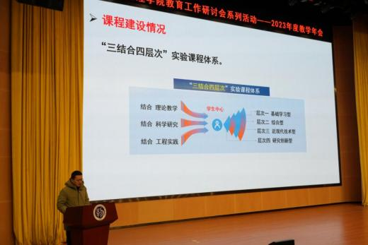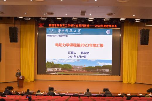 2024年1月19日上午,华中科技大学物理学院教育工作研讨会系列活动——2023年度教学年会在精密重力测量科学中心A栋W101报告厅隆重举行。物理学院教学委员会全体成员、全体任课教师、全体研究生助教出席会议。会议由副院长吕京涛主持。