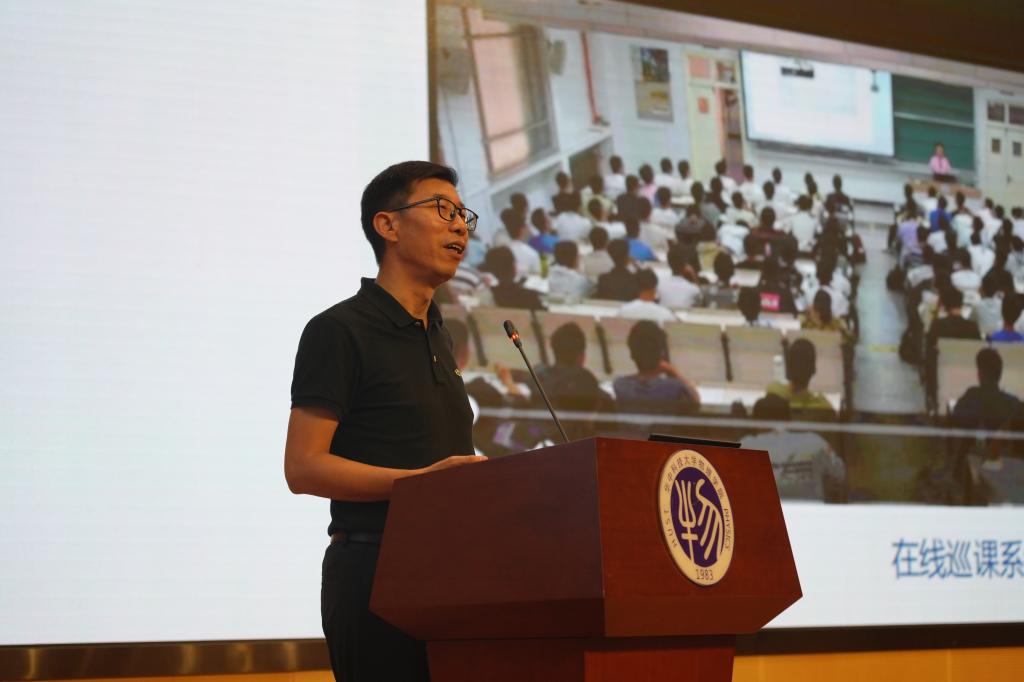 副院长吕京涛做了物理学院本科教育教学审核评估迎评工作汇报。吕院长首先传达了学校迎评工作精神,指出学校已进入全面迎评阶段,各院系应给予高度重视;向各位参会人员介绍了审核评估工作程序,专家组正式评估的主要工作,并对学校迎评工作安排中的相关文件、组织机构以及重点工作进行详细说明。接着对我院迎评的面上工作与重点工作进行部署,对教师、学生以及管理人员在迎评中的具体做法进行了介绍。最后,他希望全院师生能够齐心协力、全力以赴,高质量迎接本次本科教育教学审查工作。