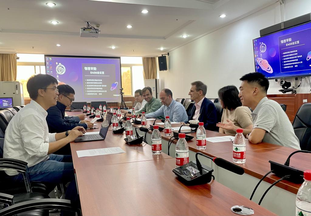 当天下午院长座谈会开展,院长蔡建明教授对约克大学物理学院代表团的来访表示热烈欢迎。后续讨论中,双方就3 + 1联合培养项目、2 + 1联合培养项目、博士生交换、科研合作、暑期学校多个项目进行深入研讨,在人才联合培养项目方面,着重强调培养学生综合能力及国际视野的重要性,针对诸多关键环节初步达成共识,并表示将尽快进一步细化方案。博士生交换与科研合作方面,讨论了合作方式、时间安排、各自的研究优势、选派标准、指导机制和课程体系等,表达了共同开展多频次、更广领域的项目合作与研讨会的强烈意愿。对于暑期学校项目,就内容设计、时间安排和学生选拔等方面进行了规划。