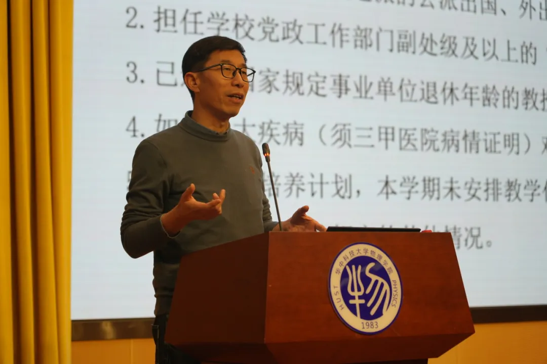 副院长吕京涛就本科教学工作做了专题汇报。他首先通报了课程组换届情况,然后对教学工作量标准、教师教研项目、学生大创项目等相关政策进行了介绍,最后对教师教学竞赛报名、期末考试电子阅卷等工作进行了提醒。吕京涛特别指出,学校将进一步加强本科生教学管理,严格落实教授为本科生上课制度,鼓励教师参加教学研讨会,全面提升教学质量。