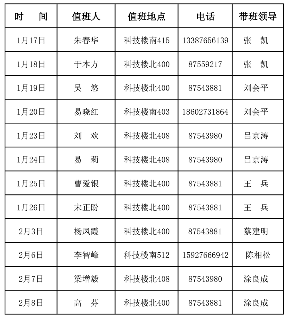 物理学院2017年寒假值班安排