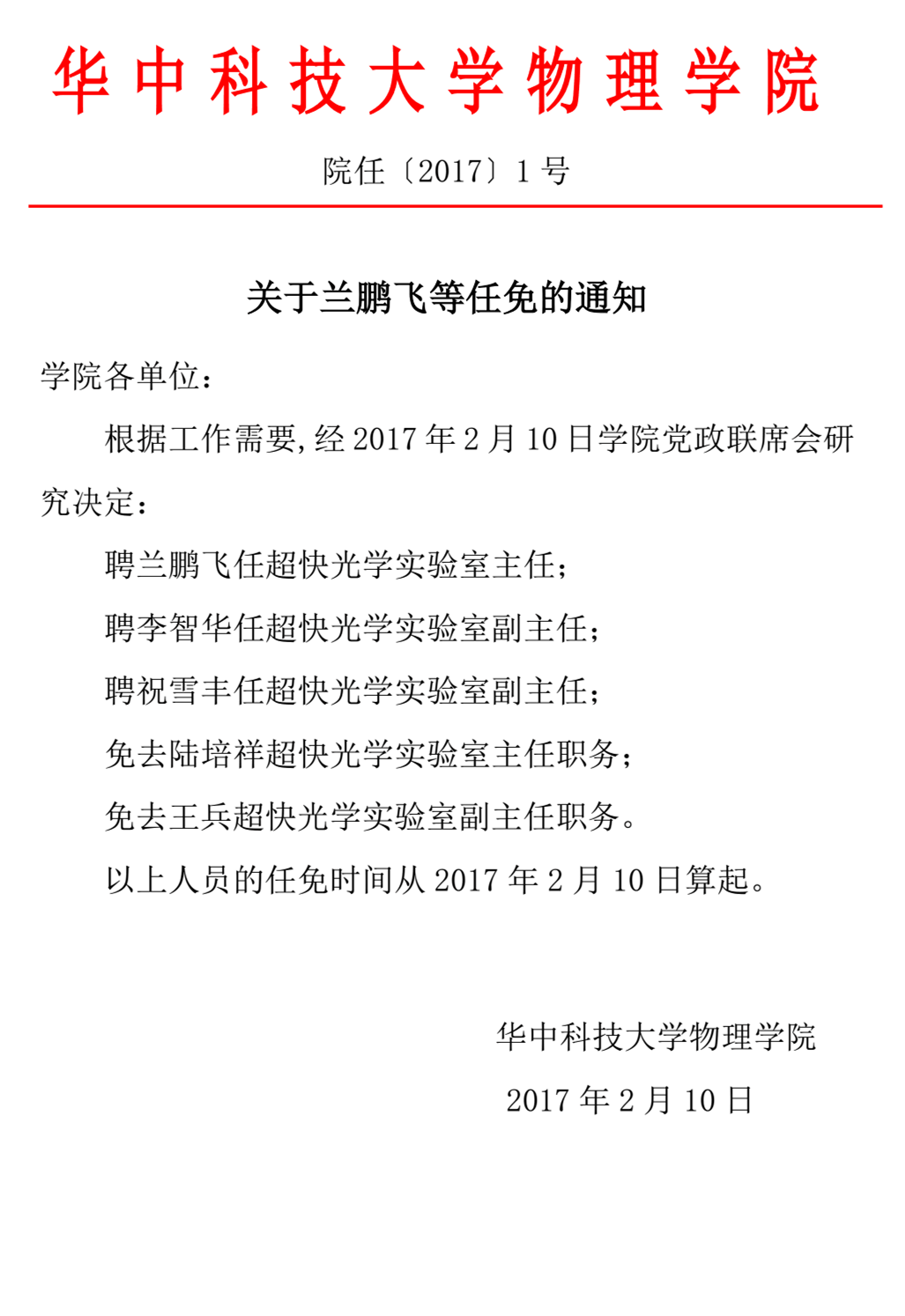 院任【2017】1号 关于兰鹏飞等任免的通知