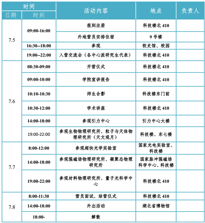 •2017年华中科技大学物理学院优秀大学生夏令营日程安排