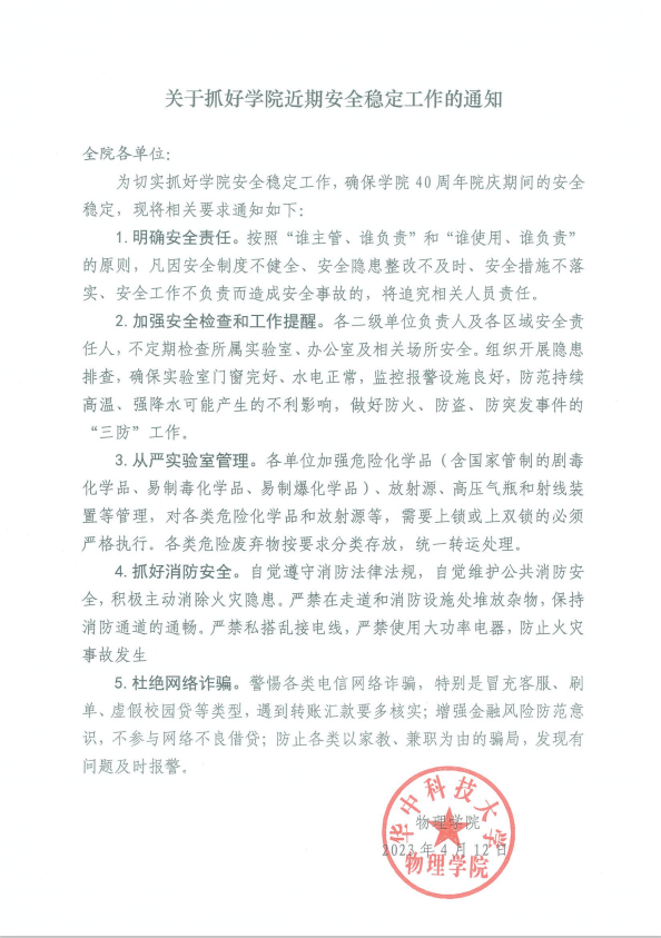关于抓好学院近期安全稳定工作的通知