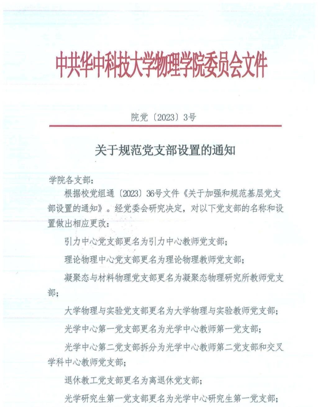 院党〔2023〕3号关于规范党支部设置的通知