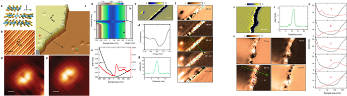 付英双教授团队在超高真空环境下解离WTe2体材料样品,利用低温扫描隧道显微镜在实空间直接观测到了WTe2的台阶处存在的一维导电边界态。该边界态不随边界具体构型变化的影响且稳定存在,表现出了与拓扑起源相关的特性。第一性原理计算表明观测到的一维边界态具有拓扑属性,且其拓扑性质不受衬底影响。这是首次从实验上实现了1T-相过渡金属硫化物薄膜拓扑特性的验证。该拓扑边界态存在于体材料台阶处,借助于体材料在压力下的超导特性可进一步构建拓扑超导体,从而有望为拓扑量子计算这一领域提供新的平台。