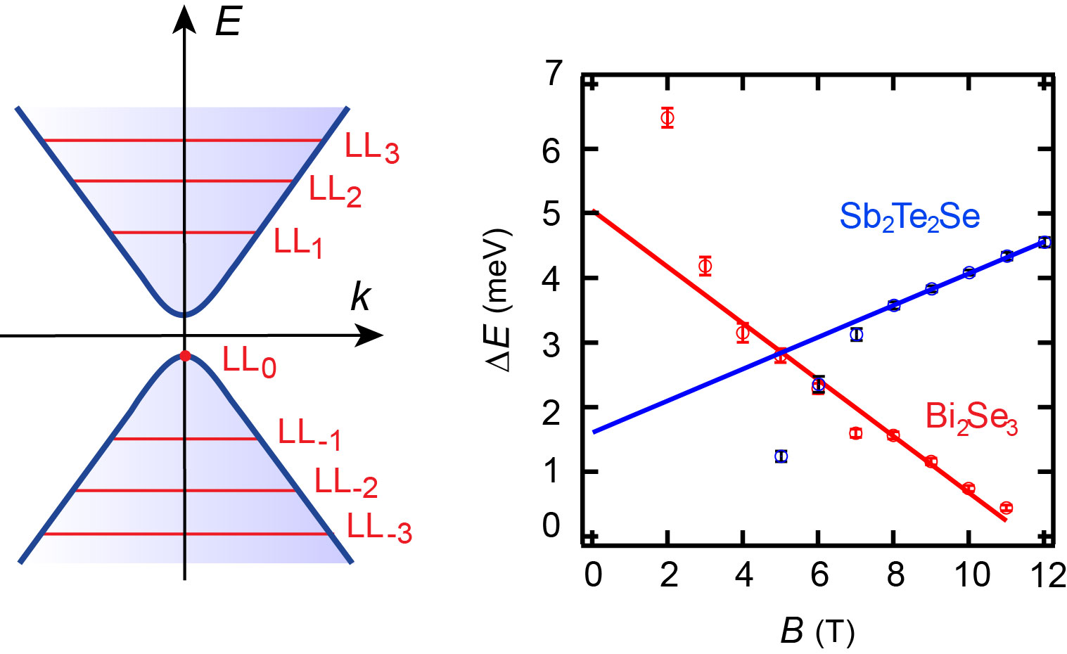 当前对拓扑表面态自旋的调控主要通过对拓扑绝缘体样品进行磁性原子的掺杂。该手段证明行之有效,但同时会造成样品的不均匀性和自旋-轨道耦合强度的减弱。利用外磁场通过塞曼效应进行自旋调控可以避免上述缺点并且精确可控。但由于受到拓扑绝缘体样品本征缺陷掺杂的影响,当前通过量子振荡测量塞曼效应的方法存在很大的争议。付英双与合作者发展了一套实空间分辨的扫描隧道谱技术,直接测量效应最显著的零朗道能级的塞曼移动。通过构建模型排除实际样品表面的电势起伏和能带结构的有限弯曲效应,首次明确地观测到塞曼效应,并精确测定出两种拓扑绝缘体Bi2Se3和Sb2Te2Se的表面兰德因子。两种材料的表面兰德因子呈现很大不同,这为拓扑表面态的自旋调控开辟了新的思路。