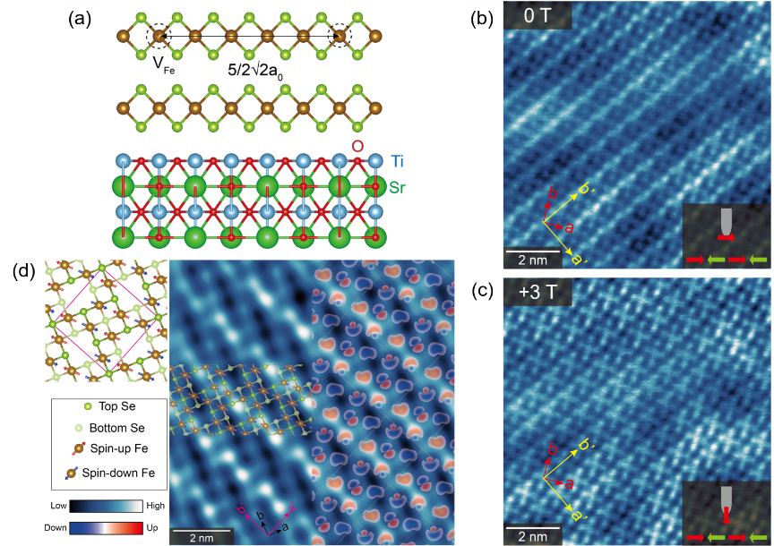 图1:Fe4Se5超薄膜的晶格和磁结构模型,以及自旋分辨成像