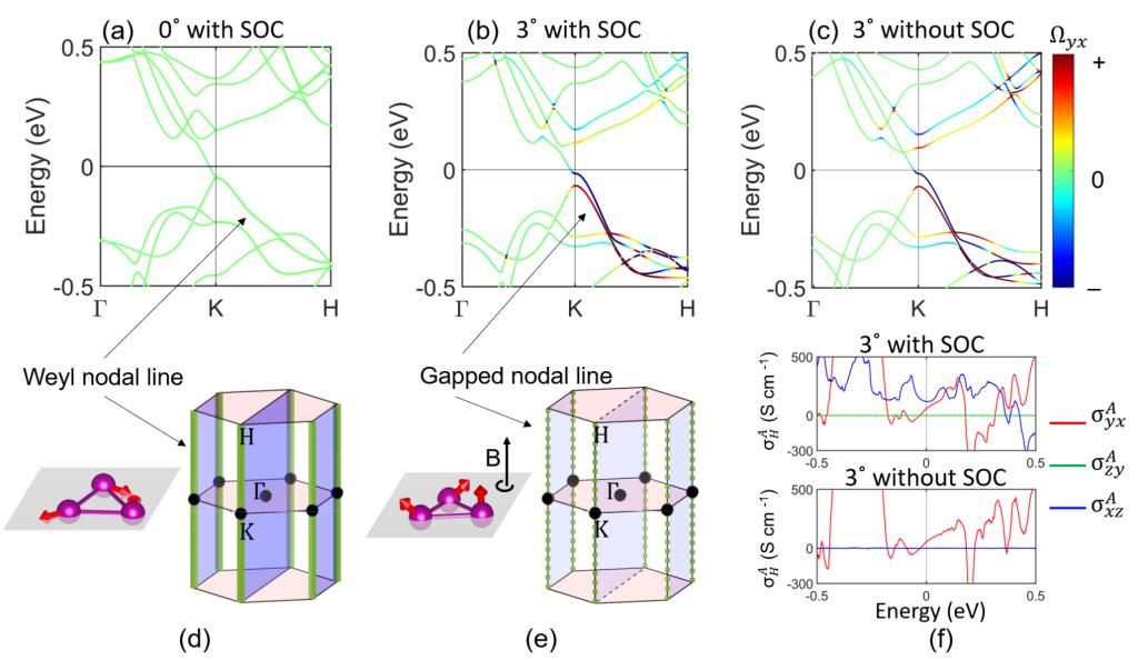 图2 自旋倾斜(或自旋手性)诱导外尔节点线能隙打开,并将贝瑞曲率推至费米面