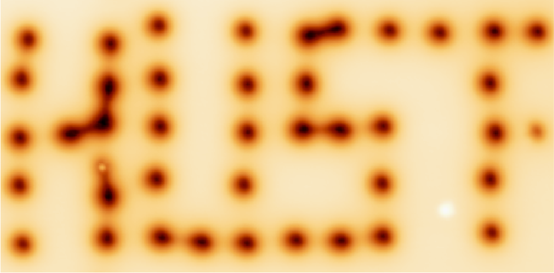图2:通过操纵单极化子摆成的“华中科技大学”英文缩写“HUST”。