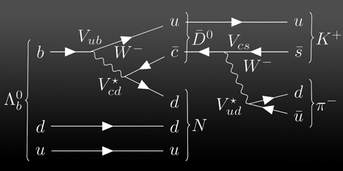 在这样的背景下,秦溱副教授与合作者们在理论上指出,Λb重子的某种衰变道可能呈现出显著的CP破坏。有趣的是,这种衰变道的CP破坏利用了量子物理学中的一个独特现象——两个跃迁振幅的干涉,类似于电子的双缝干涉实验。由于Λb重子的组分之一底夸克(b)和其衰变产物上夸克(u)的特殊耦合,这种干涉可能会导致在Λb重子系统中展现出较大的CP破坏,为实验物理学家首次证实重子中的CP破坏提供了全新的研究思路。