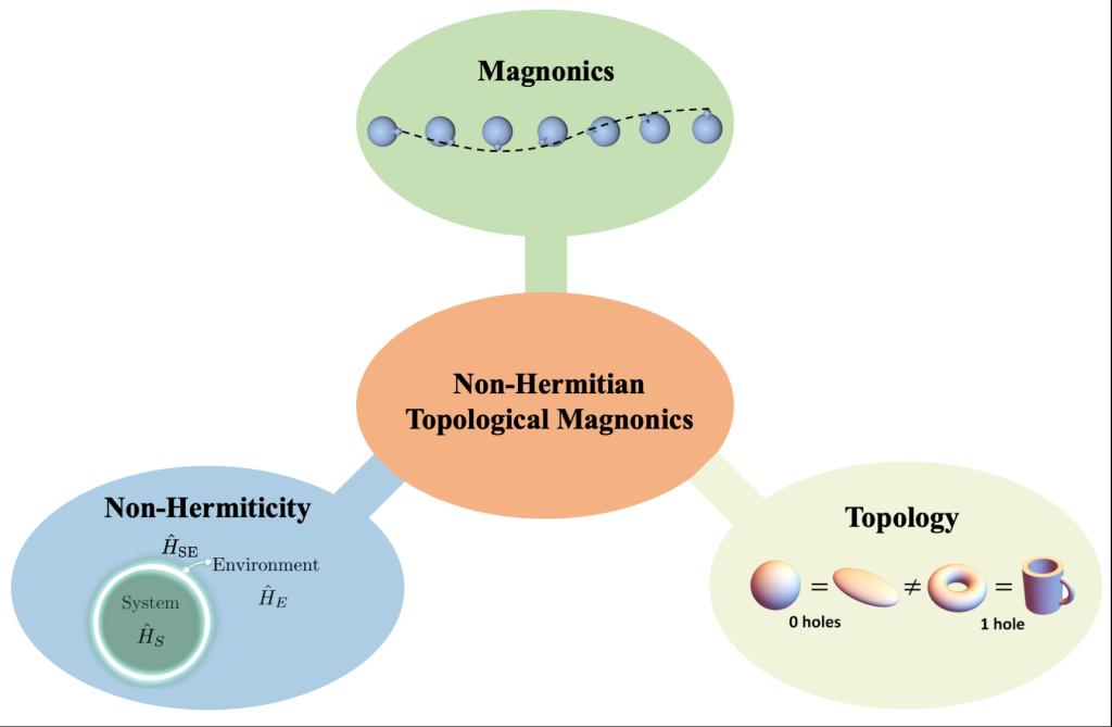 图1.非厄米拓扑磁子学:非厄米物理、拓扑物理和磁子学。