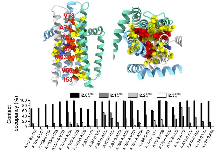 图2决定膜蛋白稳定性的关键相互作用分析。