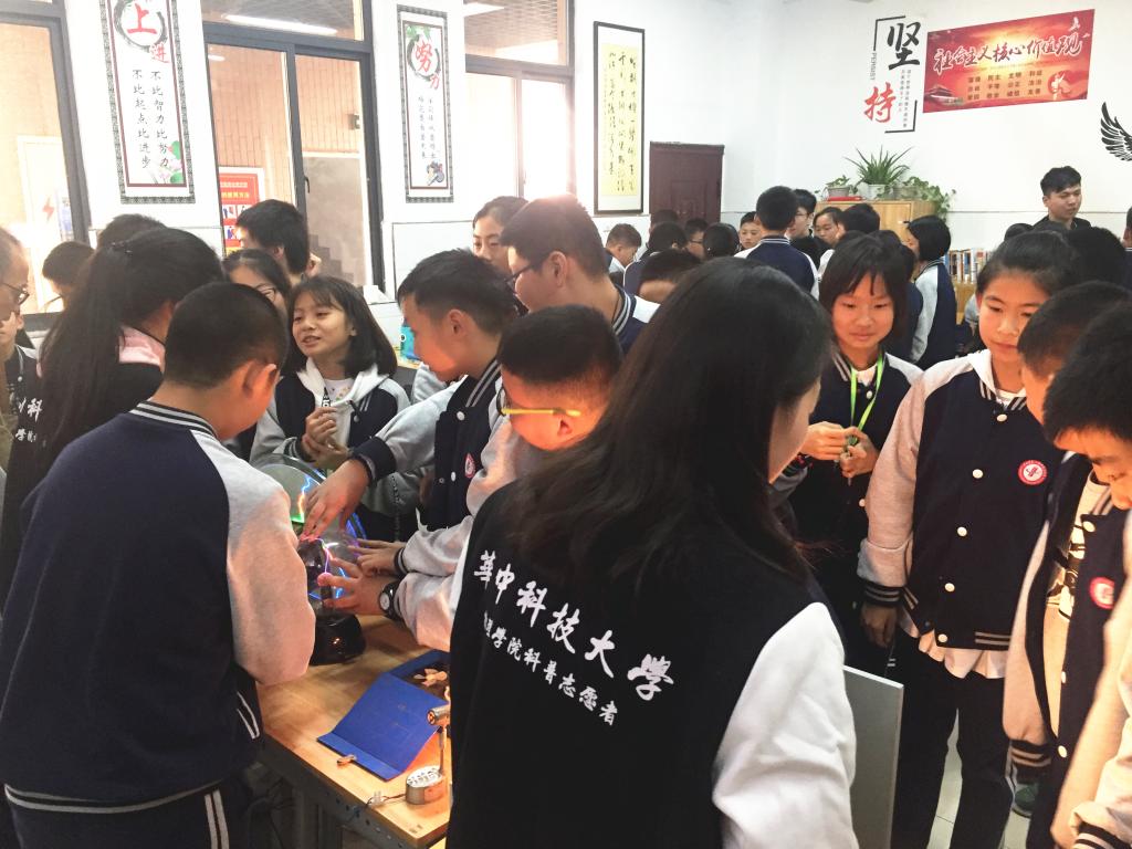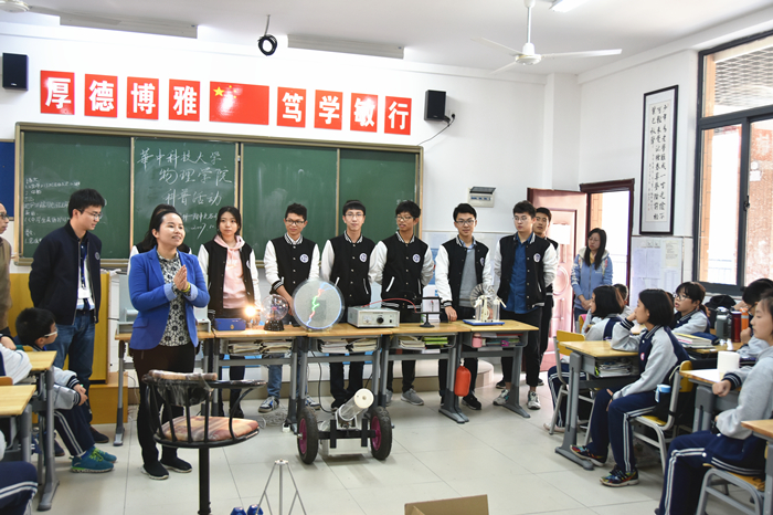 2017年10月30日,我院科普志愿者一行13人,在学工组长刘欢老师、大学物理实验中心李彬老师和皮厚礼老师的带领下,赴华中师范大学第一附属中学光谷分校开展科普实践活动。