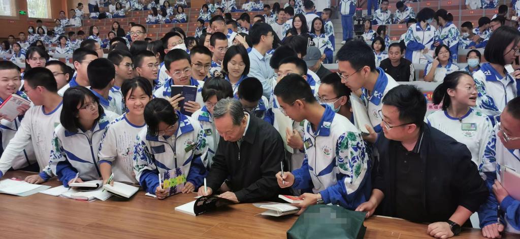叶院士的报告幽默风趣,同学们沉浸在科学知识中全身贯注目不转睛,临近结束同学们还积极提问意犹未尽。正恰逢全民阅读日,讲座结束后叶院士为提问的同学赠送了科普读物《量子科技公开课》,并为同学们写下寄语鼓励同学们好好学习,为国家科学技术创新进步贡献自己的力量。