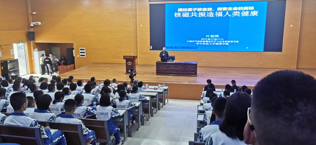 叶院士为同学们讲解了核磁共振(NMR)对科学的贡献和未来发展趋势。叶院士指出多学科的广泛应用给NMR提供了持续发展的基础。并通过举例核磁共振在日常生活的运用,把深奥的物理学知识与同学们的日常生活联系起来,启发了同学们对科技创兴科技运用的探索和求知欲。叶院士在总结中表示高中知识的学习正是同学们打基础的关键时期,未来欢迎同学们积极投入基础学科研究,将自身前途命运同国家民族前途命运联系在一起,为国家实现更大的科学进步做出更多的贡献。