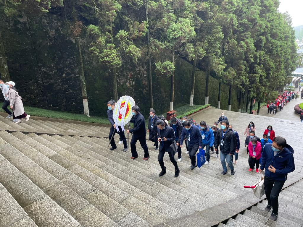 16日下午,物理学院井冈山、南昌红色专题社会实践研修班来到井冈山革命烈士陵园。党委书记张凯、院长陈相松手捧花圈,沿着台阶缓缓而上,带领学员们,将物理学院敬献给井冈山革命烈士的花圈,置于庄严肃穆的纪念大厅正中央,共同深切缅怀长眠在此的革命烈士。随后,在场党员面向鲜红的党旗,重温入党誓词,再一次深刻表达了对党的无限忠诚和对革命先辈的崇高敬意。