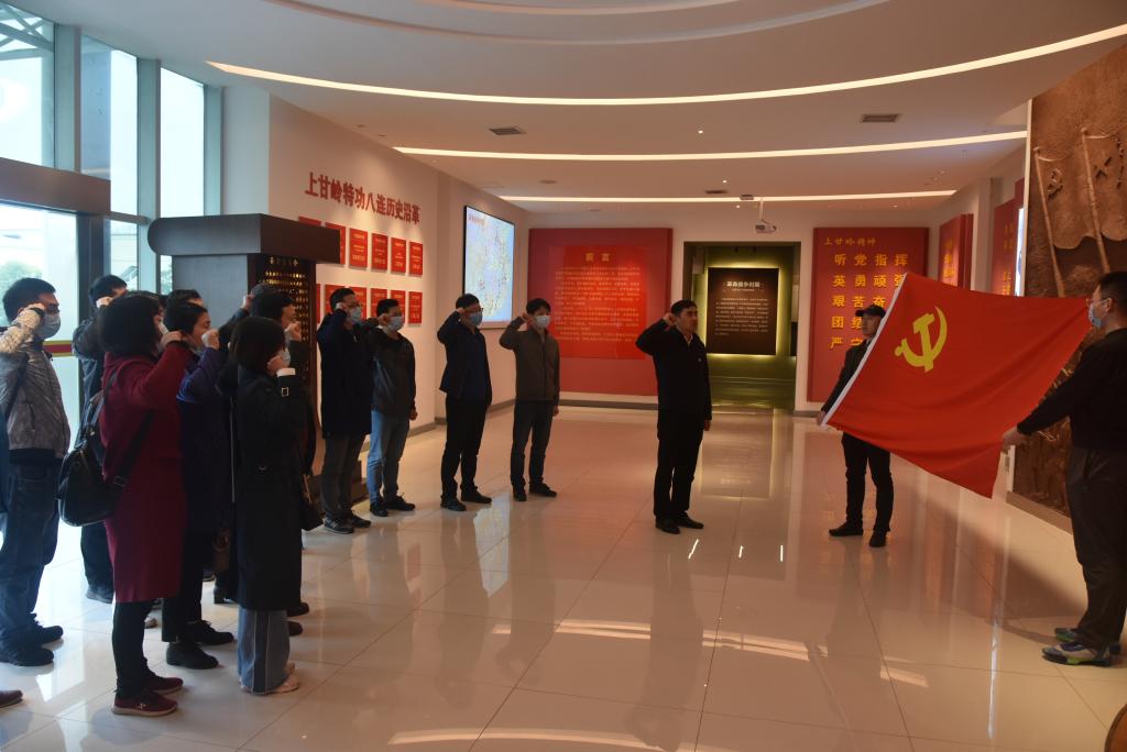 全体党员首先来到位于武汉市黄陂区的上甘岭特功八连荣誉室。上甘岭特功八连所在部队是一支具有光荣传统的红军部队,1931年创建于鄂豫皖根据地,八连在举世闻名的上甘岭战役中浴血奋战43天,坚守坑道14昼夜,歼敌1700余名,最终将有381个弹孔的战旗插上了上甘岭主峰,荣立集体特等功,他们用鲜血和生命铸就了“听党指挥、英勇顽强、艰苦奋斗、团结友爱、严守纪律”的上甘岭黄继光精神。从此,“只吹冲锋号,不打退堂鼓”成为激励一代代八连官兵的连魂。