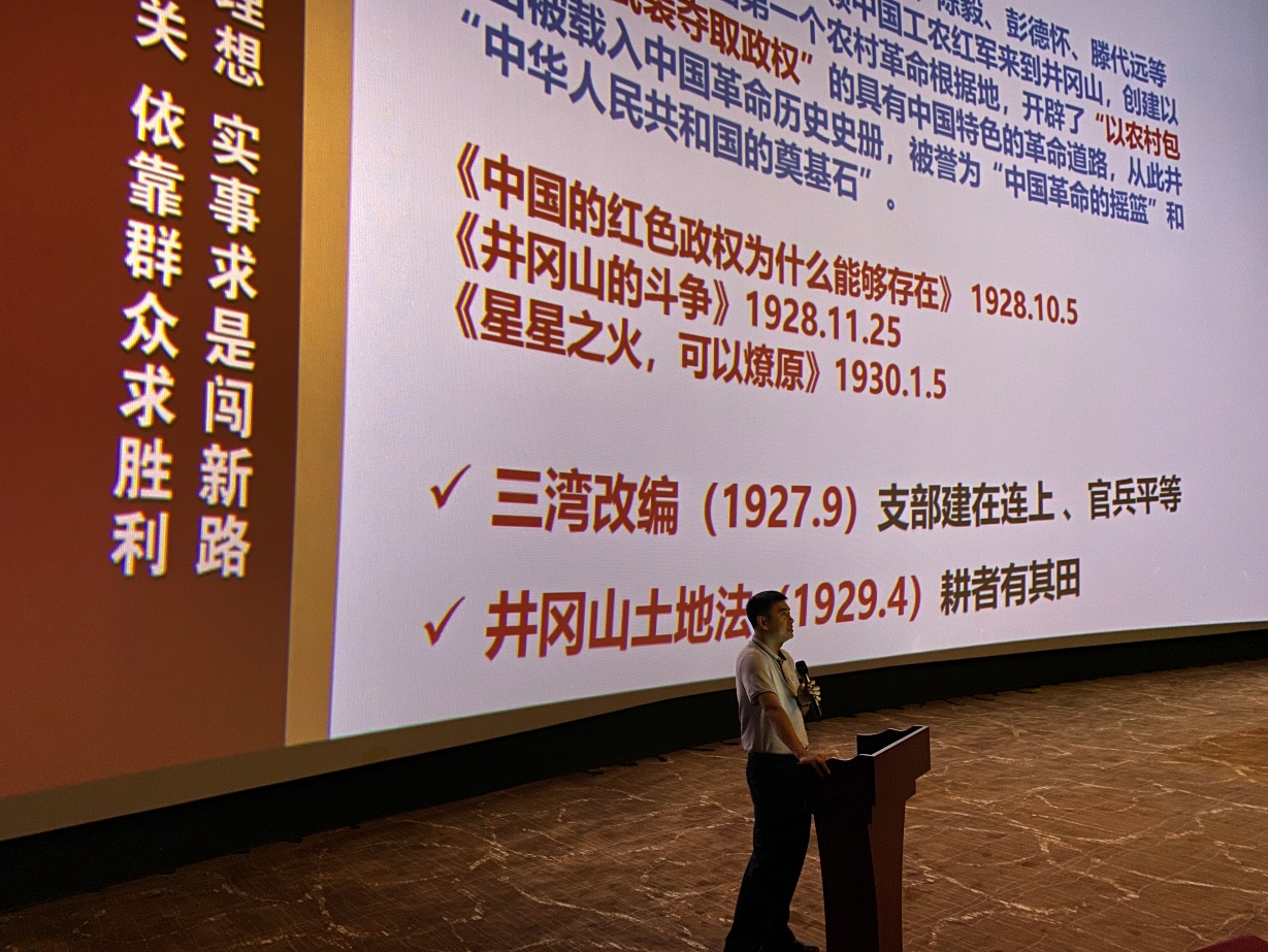 活动伊始,学院党委书记张凯以“新时代开启新征程、新青年需要新作为”为主题,给全体学生党员上了一堂生动的思政课。张书记首先带领大家回顾了新中国成立后自力更生、艰苦奋斗的发展历程,随后讲到了新时代中国的发展给世界的机遇,并鼓励大家在新时代要抓住机遇,与祖国“同频共振”,一同前行。张书记回顾物理学院的奋斗历程时,提到学院的研究成果“2018年得到了当时最精确的引力常量G的值”首次出现在高中物理教材中,这是国内物理研究成果首次写入高中教材,同学们纷纷为学院取得的成果而自豪。最后,张书记鼓励同学们在新时代要有新作为,要担当历史使命,立潮伟大复兴,努力成为国家核心竞争力!
