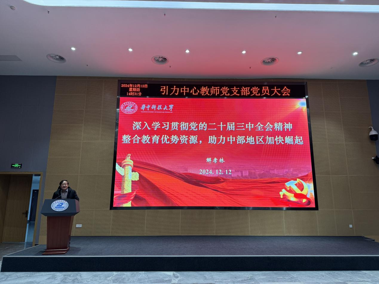 解孝林以“深入学习贯彻党的二十届三中全会精神——整合教育优势资源,助力中部地区加快崛起”为题,为全体教师党员讲授党课。他深入解读了全会精神的核心思想,特别是对我国经济新阶段战略部署和中部地区发展的重要指示。他强调,学校作为位于中部地区的中国高等教育“国家队”,积极响应国家战略需求,积极推动创新驱动、人才培养和区域协同发展。面向未来,学校将以改革精神推进各项工作,通过教育、科技、人才一体化发展,支撑中国式现代化,整合教育资源,早日实现华科梦,为中部地区崛起贡献力量,书写华科大高质量发展新篇章。