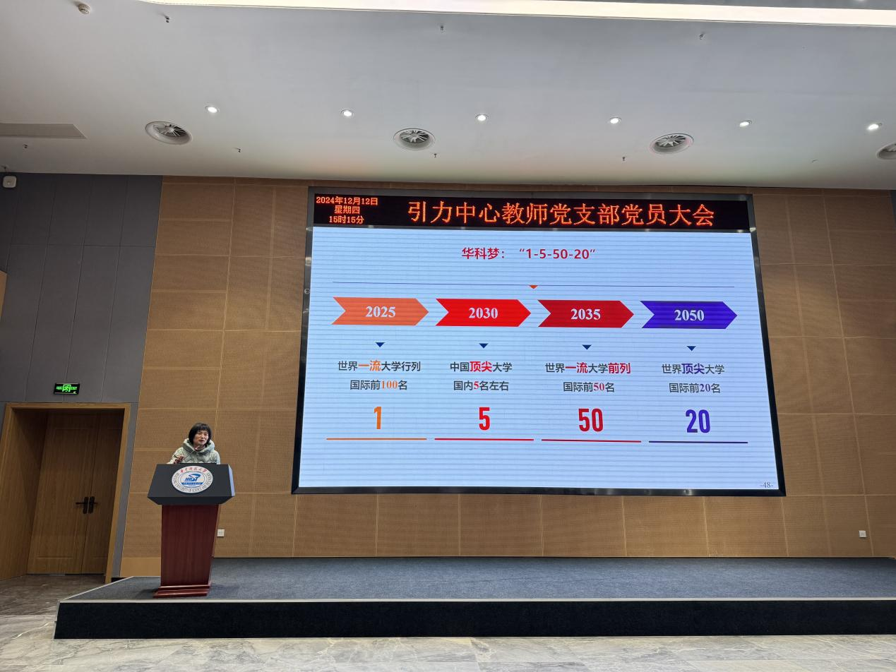 2024年12月12日,引力中心教师党支部在国家精密重力测量科学中心A栋W401召开“落实全会精神,创新驱动中部崛起”主题党日暨党员发展大会。校党委常委、副校长解孝林,物理学院党委书记刘会平出席会议。会议由支部书记罗志才主持。