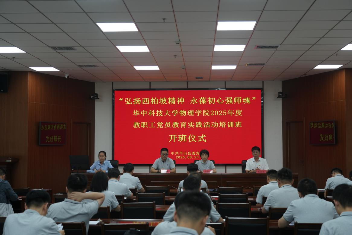 8月23日下午,开班仪式在庄严的国歌声中拉开帷幕。中共平山县委党校副校长范会成出席并致欢迎词。物理学院党委书记刘会平在动员讲话中强调,本次培训是加强教职工党员党的创新理论武装、增强党性修养、提升能力本领的重要举措。她希望全体学员珍惜学习机会,深刻领会西柏坡精神的时代内涵,将学习成果转化为推动学院高质量发展的实际动力。