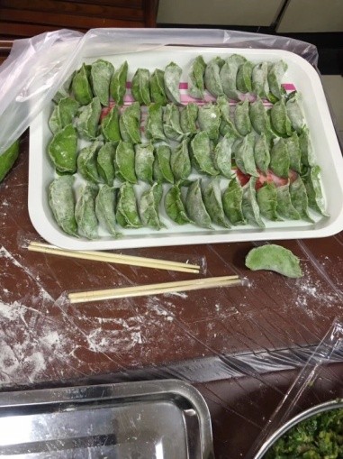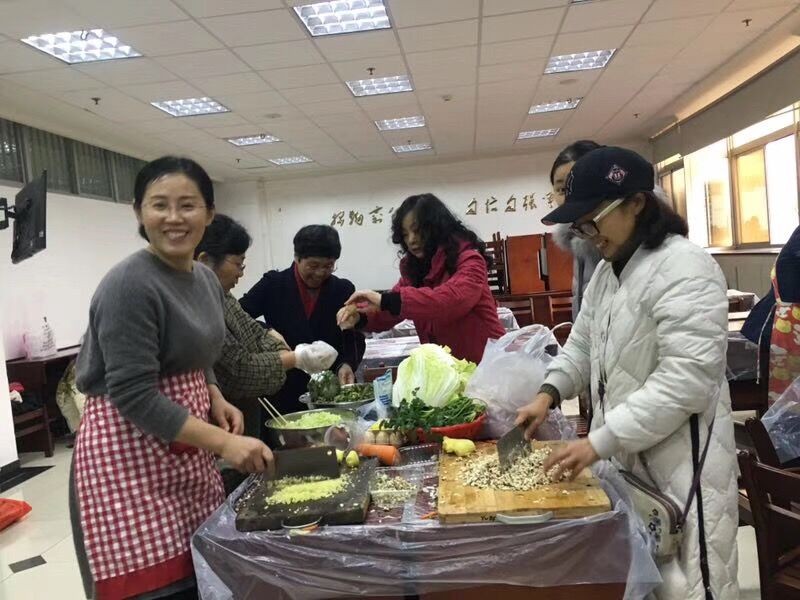 下午三点钟,学院女教工们开始了一系列的准备工作,摘菜、洗菜、切菜、调馅,和面……经过大家一个多小时的忙碌,饺子馅和面团都准备好了。老师们络绎不绝的加入进来,包饺子活动现场更加热闹,大家捋着衣袖,揉面、擀皮、包饺子,分工协作,井然有序。看,一只只精巧的饺子排列在托盘里,有的像月牙、有的像元宝,形态各异,好看极了。原来,走下讲台的老师们个个都是能工巧匠,厨艺了得,就连平时不下厨的男老师们,也纷纷加入进来学习包饺子。气氛欢快而轻松,温馨的场面俨然一个快乐祥和的大家庭。经过大家的共同努力,一盘盘热呼呼的饺子新鲜出锅。