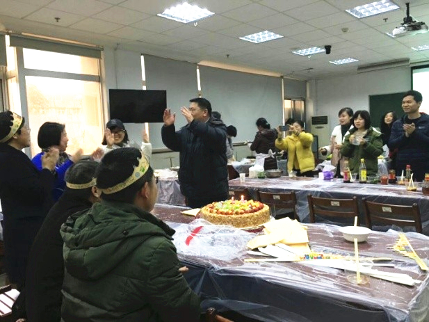 此次活动还有一个重要的环节,为生日在10月、11月、12月的老师们共同举办生日会。学院工会订购了18英寸蛋糕,为第四季度的43位老师过集体生日,大家为他们共同唱生日快乐歌。
