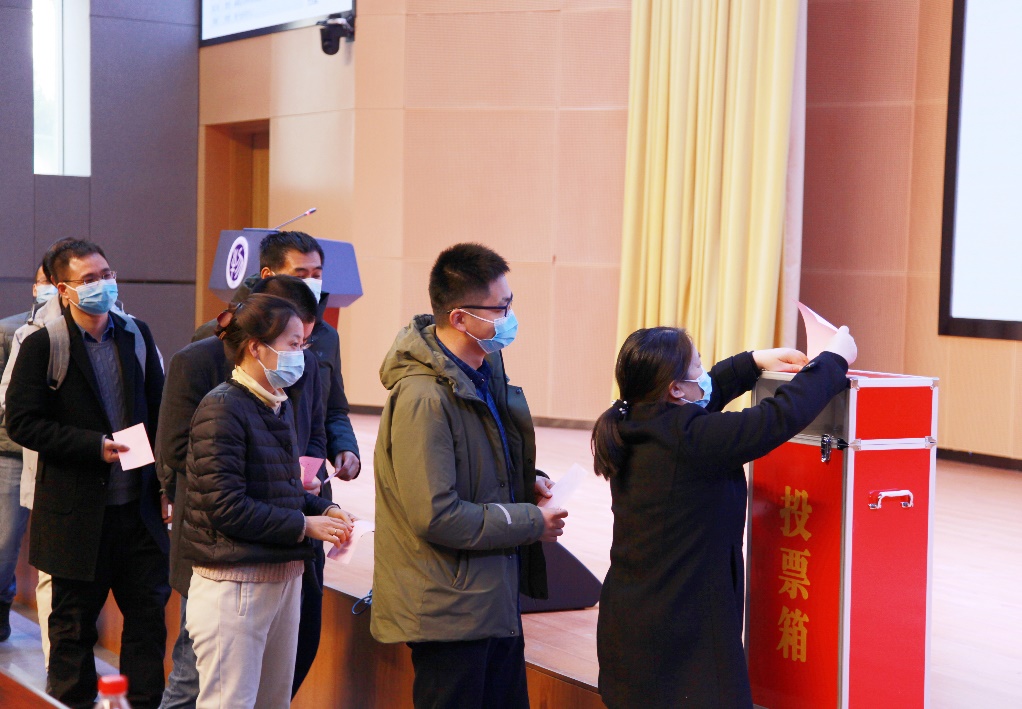 2021年12月9日下午,物理学院在精密重力测量科学中心大楼101报告厅举行2021年教职工大会暨工会会员大会,并投票选举学校“两代会”正式代表。本次大会由工会主席黄胜友主持,学院全体教职工参加会议。