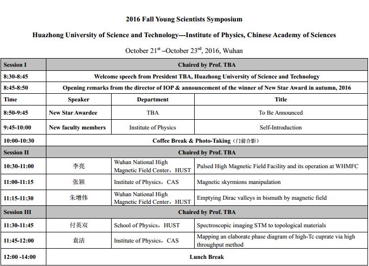 华中科技大学-中科院物理所2016青年科学家会议本周六(10月22日)在宏嘉酒店对面博士后公寓2楼会议室举行。
