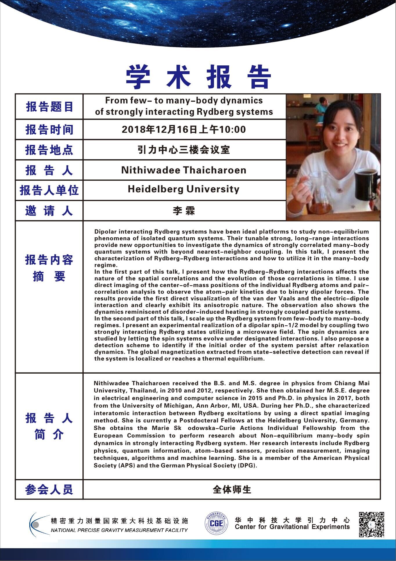 学术报告(20181216)From few-to many-body dynamics of strongly interacting Rydberg systems